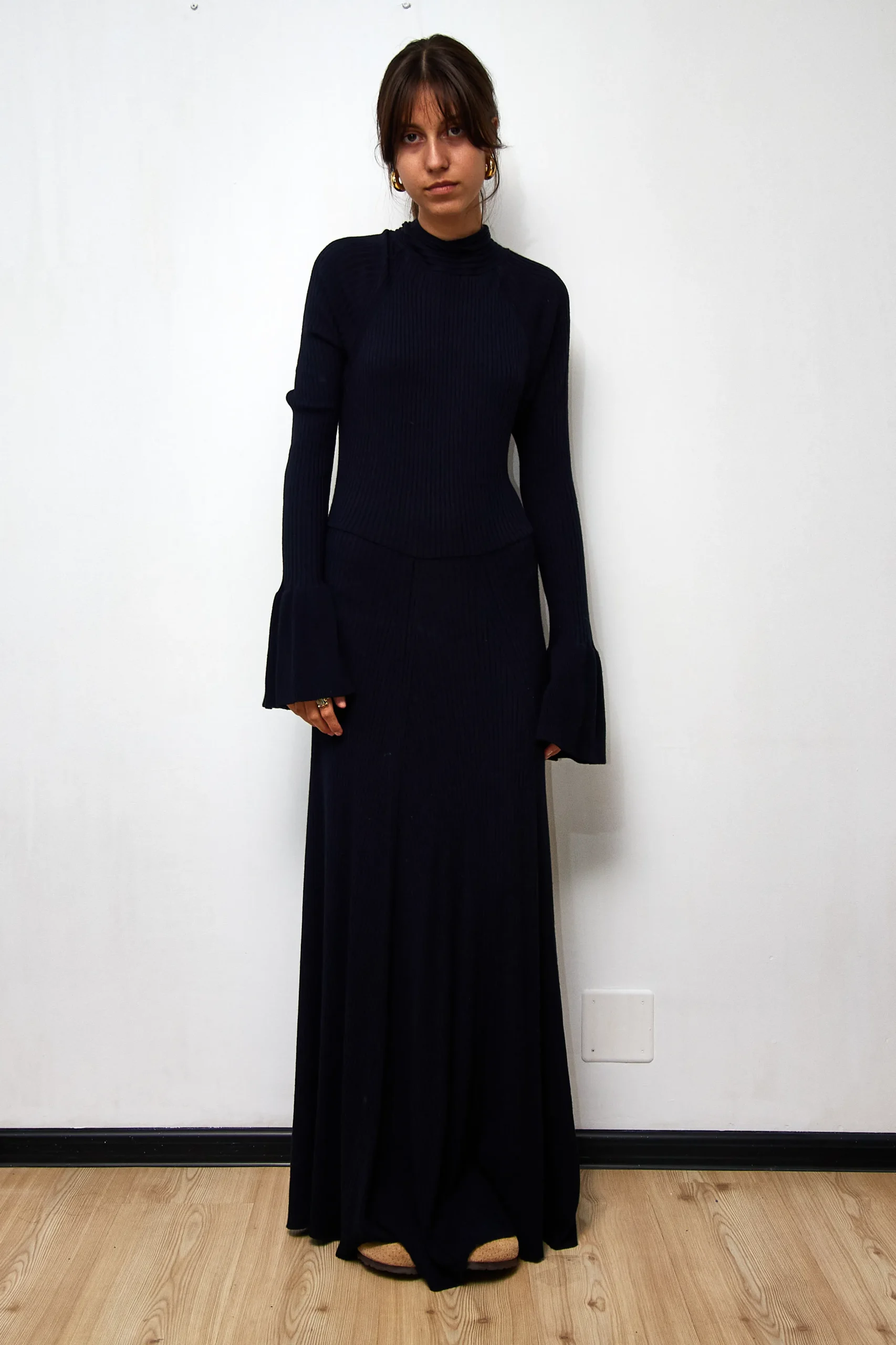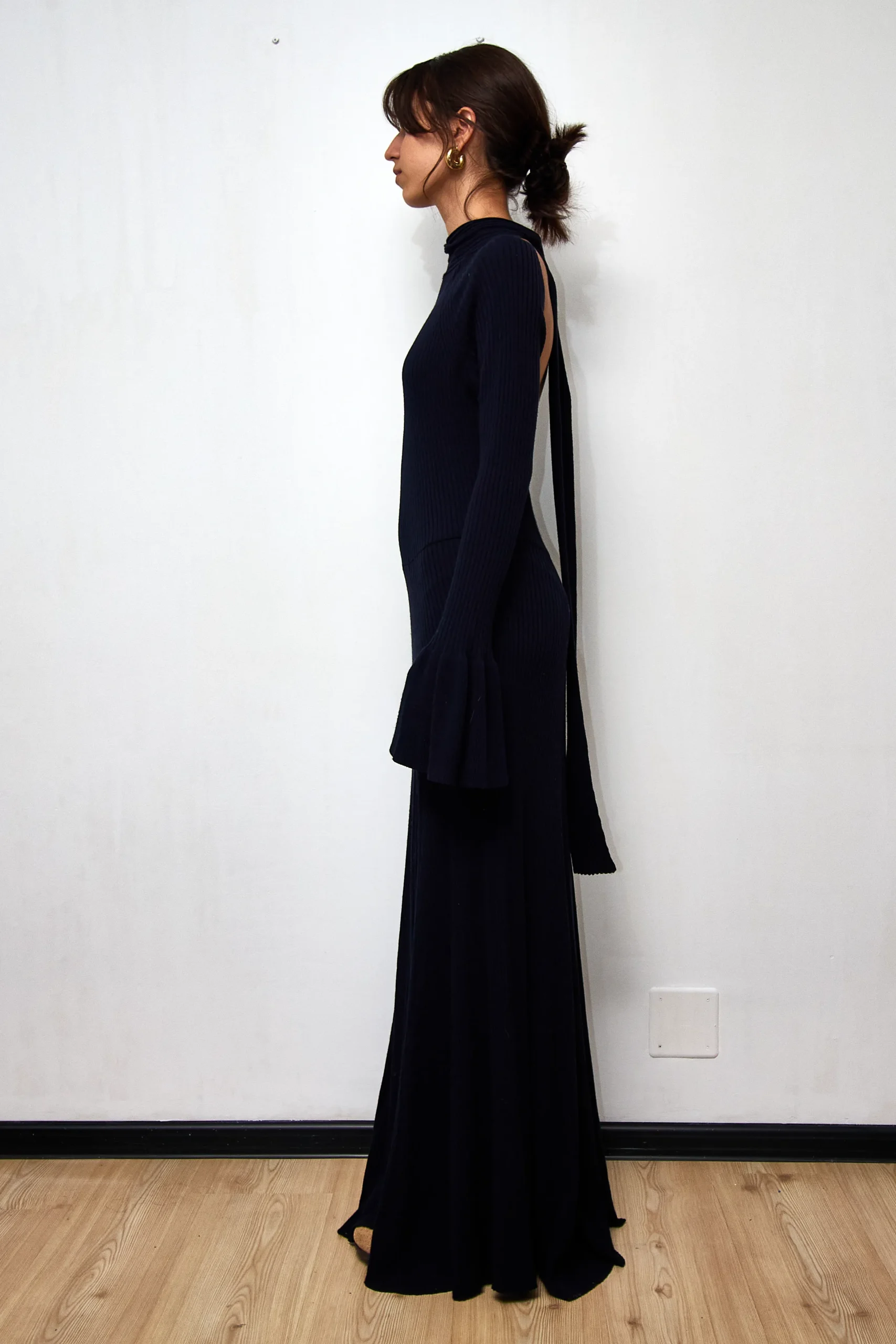 H&M Knit dress in navy, 92% viscose, 8% polyester, length 150cm.