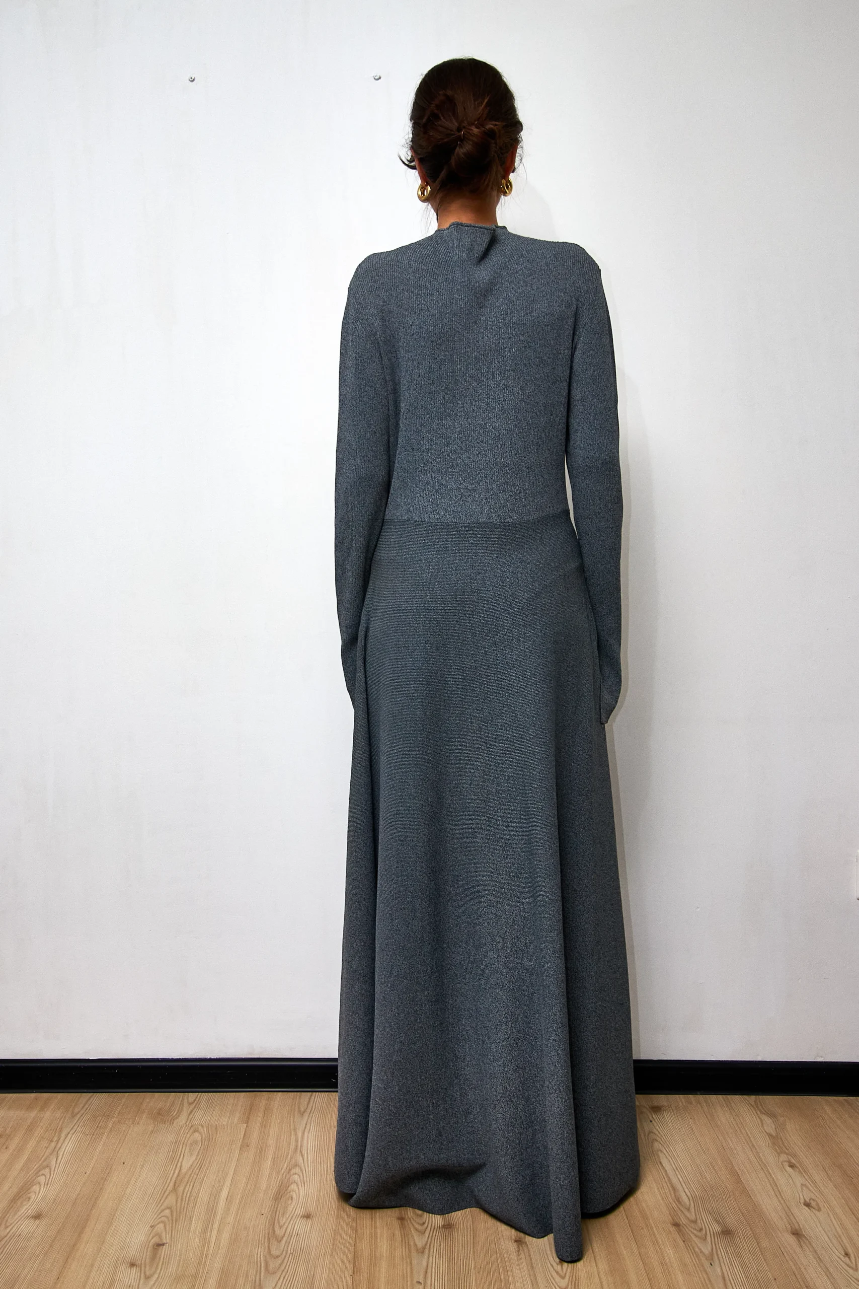 Long dress in a heavy knit with long sleeves, 52% viscose, 47% poliamide, 1% elastane. Length 142cm.