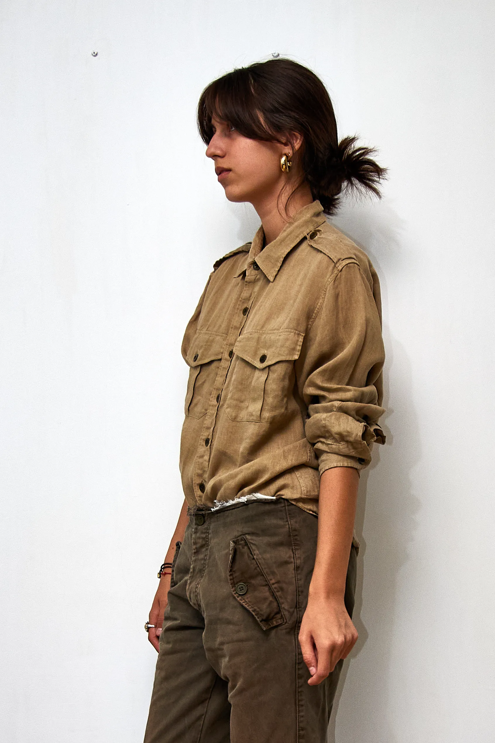 Ralph Lauren Safari Shirt in linen, bust 104cm, length 72cm, size 12 on the label, 100% linen.