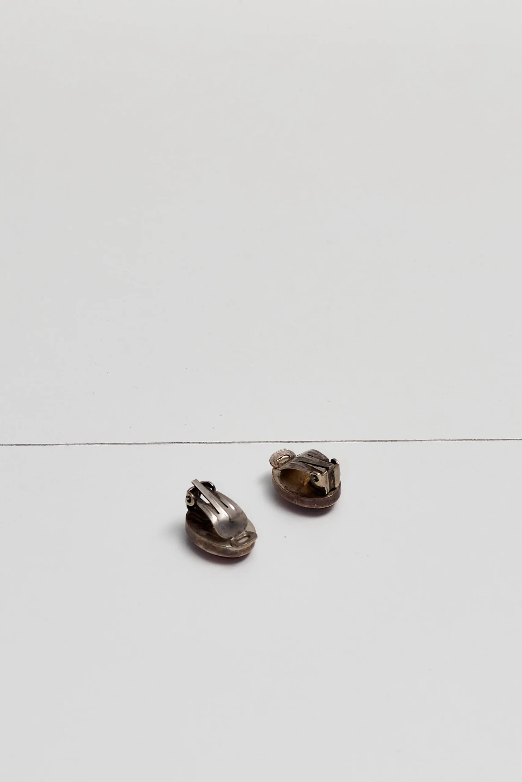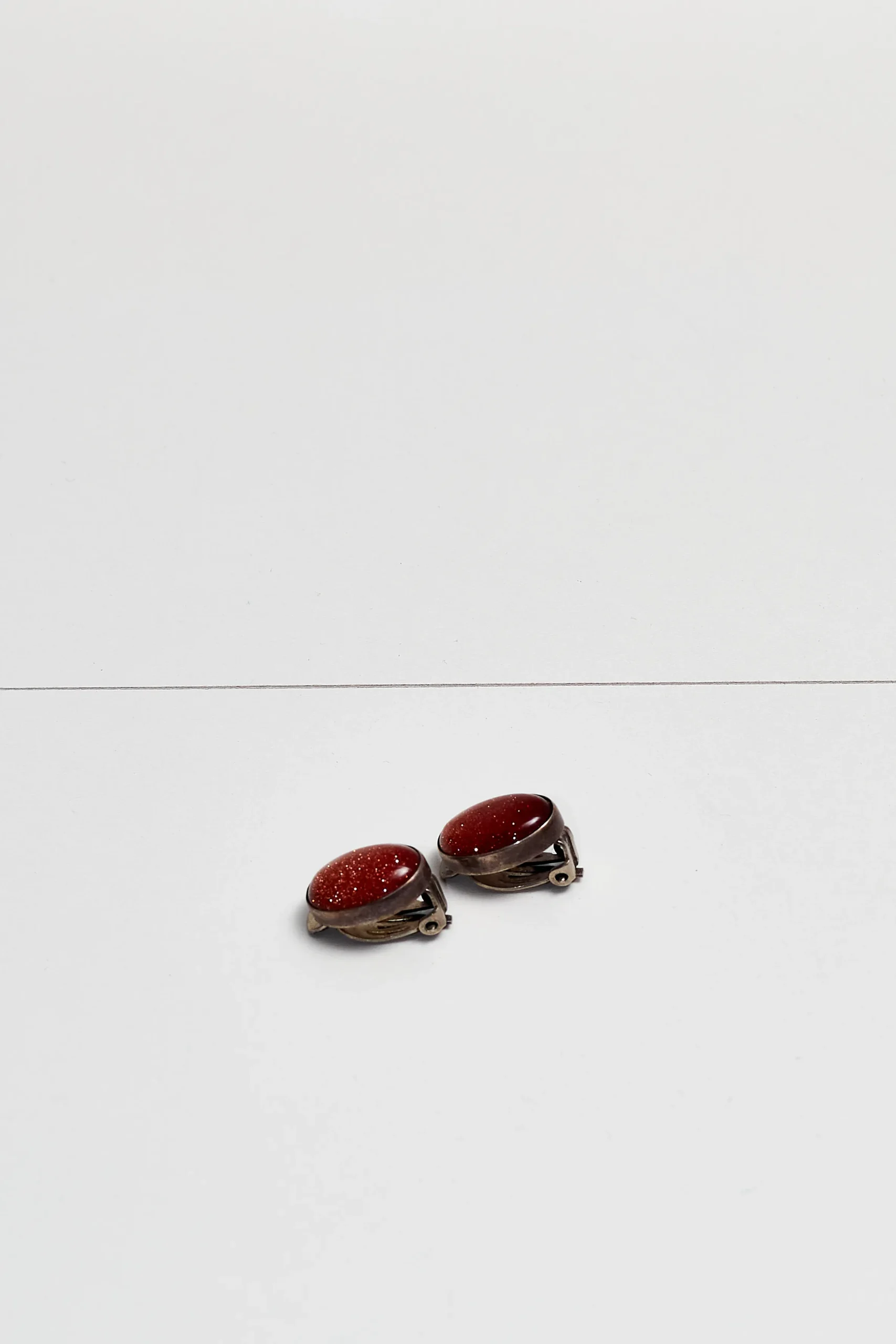 Button-style sterling silver clip-on earrings with an oval shaped goldstone. 2cm.
