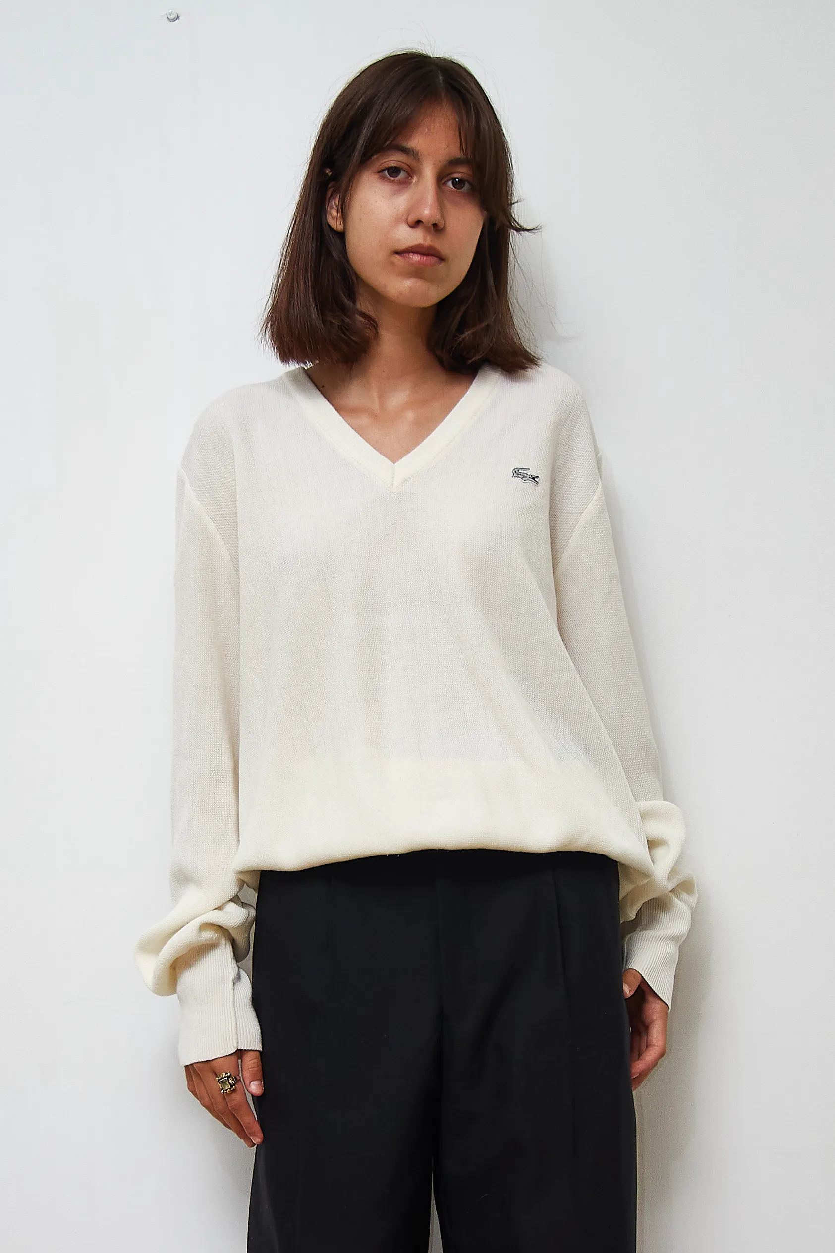Vintage blouse Lacoste Chemise, no inside tags, unknown material, size estimation:L, length 68cm, bust 130cm.