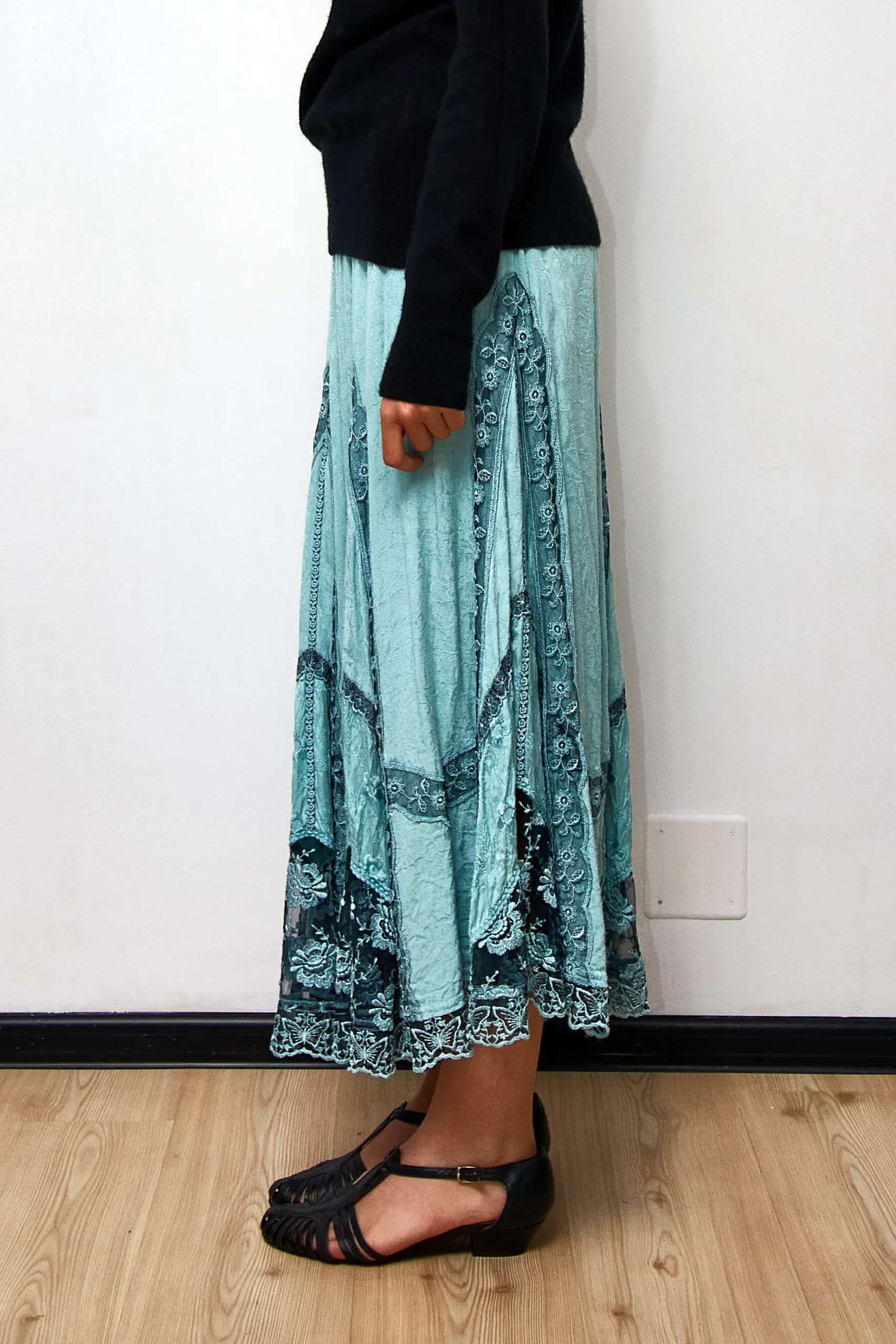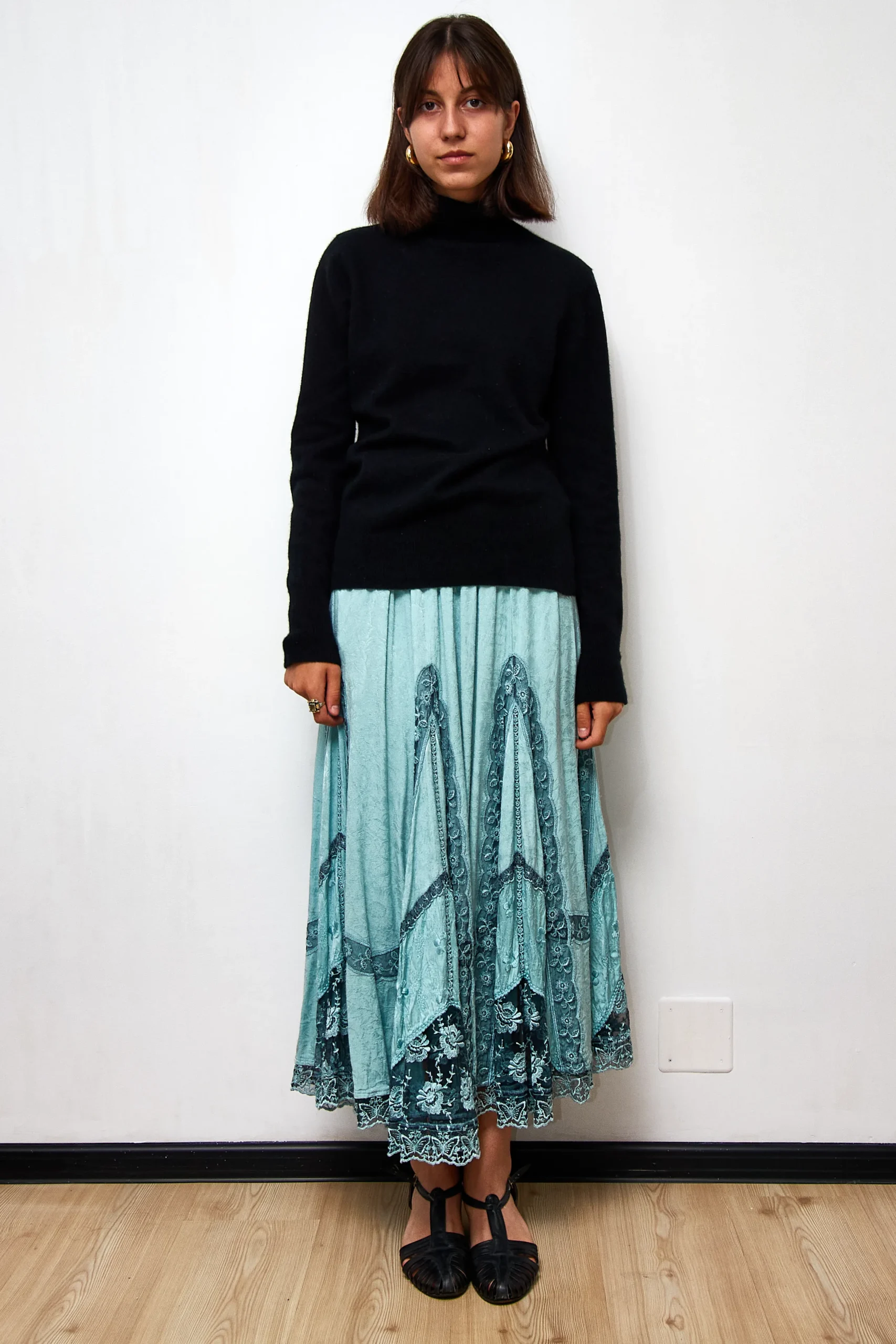 Vintage mint skirt, 100% viscose, with elasticated waist, length 90cm.