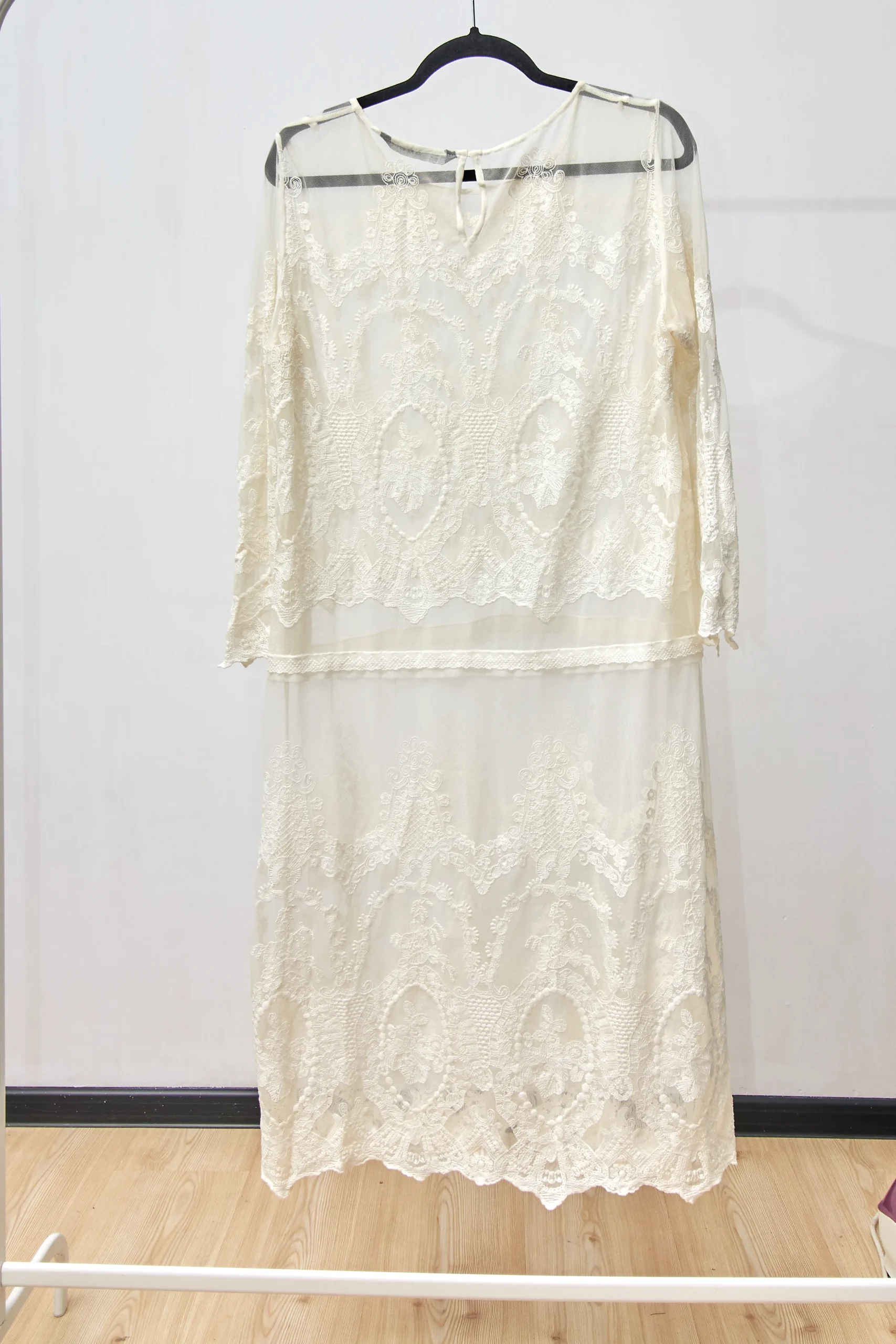 Lace sheer dress – beach friendly. Bust 110cm, length 109cm. Missing composition label.
