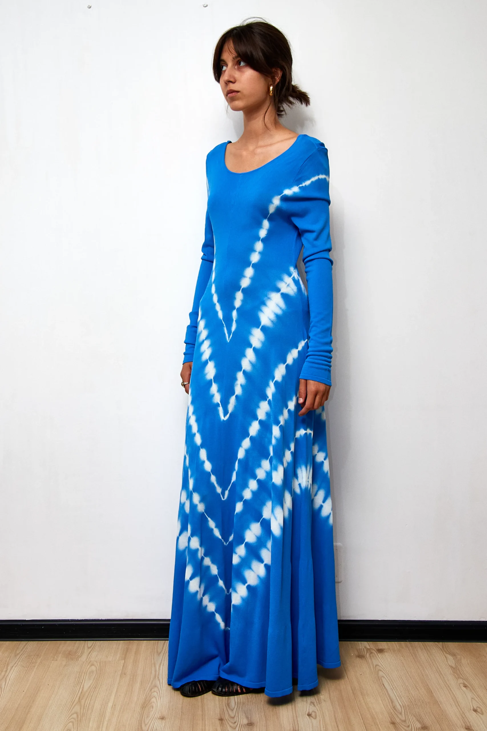 Zara long knit dress with long sleeves, 75% viscose, 25% nailon, length 148cm.